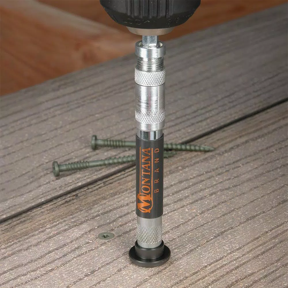 Driving screws to consistent, repeatable depths can be a real challenge. The versatile, multi-functional Adjustable Depth Stop Screw Guide makes this task easy and fast for woodworking projects, drywall installation and general construction projects. Get professional results with quality-made, high performance accessories from Montana Brand. Set includes: (1) Adjustable Depth Stop Screw Guide (1) 1″ Phillips #2 Driver Bit (1) 1″ Square #2 Driver Bit (1) 1″ Star #25 Driver Bit