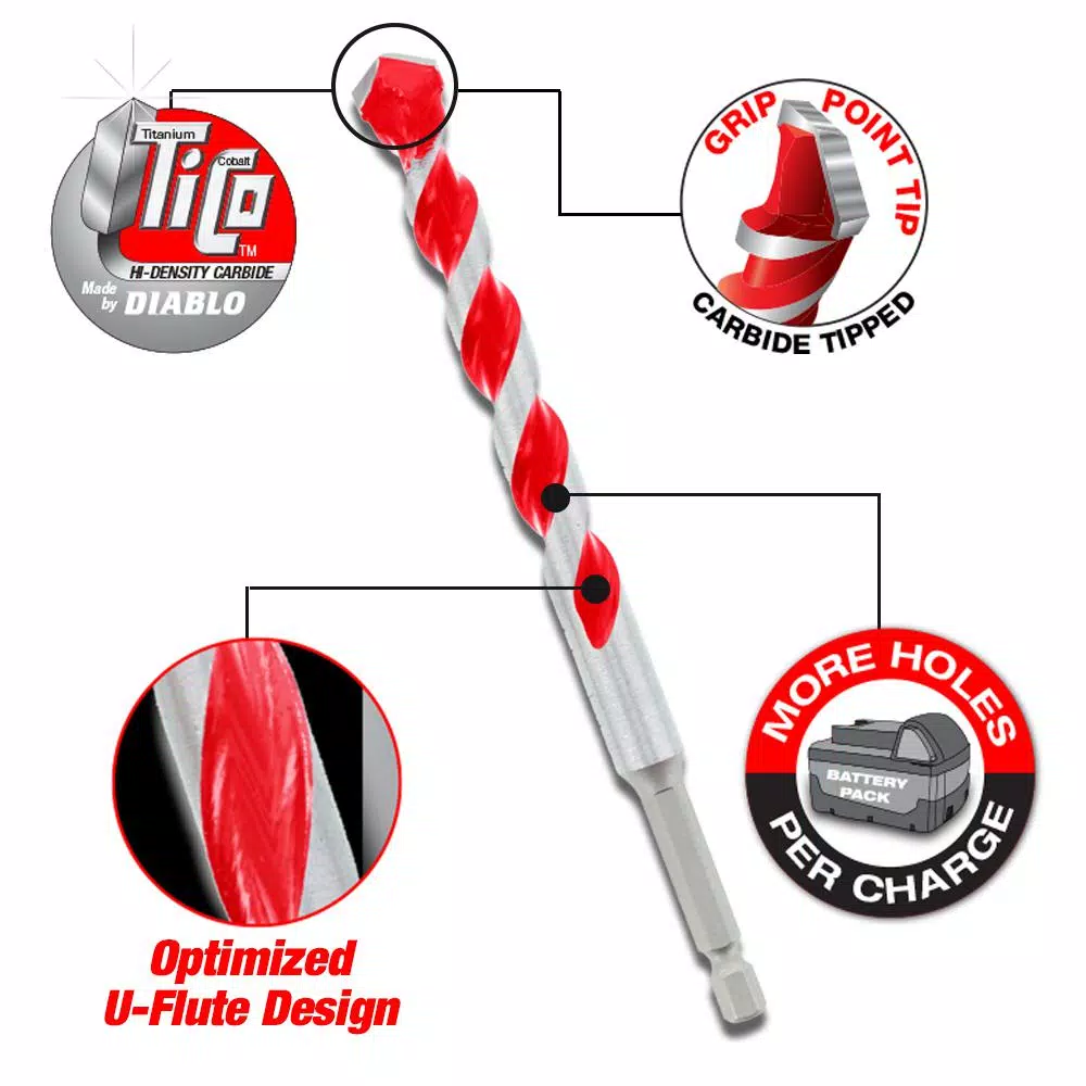 - DIABLO made carbide tip withstands impact and high heat applications for superior life versus standard masonry hammer drill bits