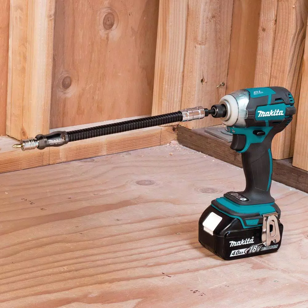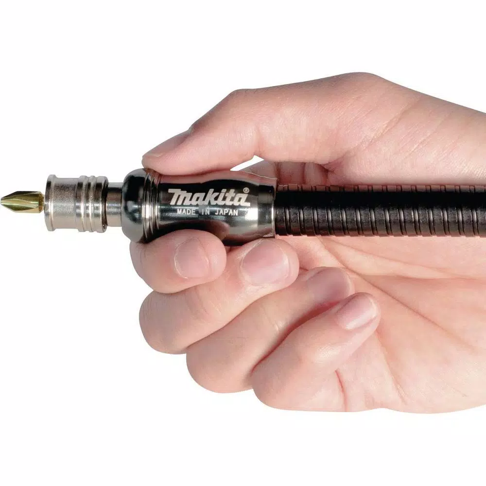 Get the right accessory for fastening in hard-to-reach spaces with the Makita 12 in. Flexible Bit Holder. The high quality steel construction is engineered for use with high-torque impact drivers, with a full 12 in. L for extended reach.