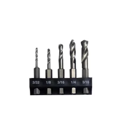 - 5-piece stubby bit set includes 3/32 in., 1/8 in., 3/16 in., 1/4 in., and 5/16 in. bits