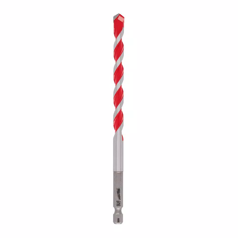 The Milwaukee 5/16 in. x 4 in. x 6 in. Carbide Hammer Drill Bit uses sharpened carbide to deliver up to 5x longer life in concrete and up to 2x faster drilling into masonry materials. Engineered with a precision ground tip, these masonry drill bits deliver faster starts and less walking in concrete, brick and block. The carbide-tipped masonry drill bitsβ wide flute design removes dust faster, reducing heat and delivering more holes per charge. Each bit is equipped with a 3-flat shank, providing users with better grip and control. The extended life of the Milwaukee Carbide Hammer Drill Bits provides the ideal solution in concrete, brick and block for cordless and corded hammer drill/drivers.