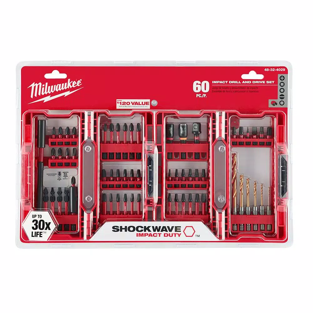 - Includes 2 SHOCKWAVE impact duty drill and drive bit set (60-piece) (48-32-4029)