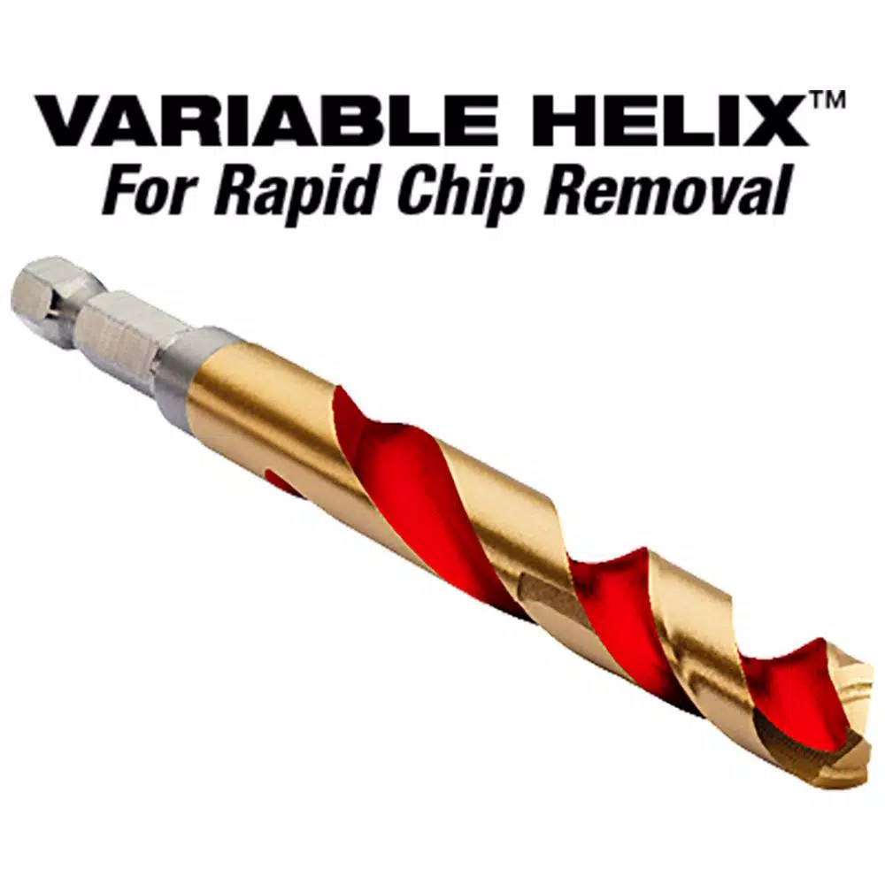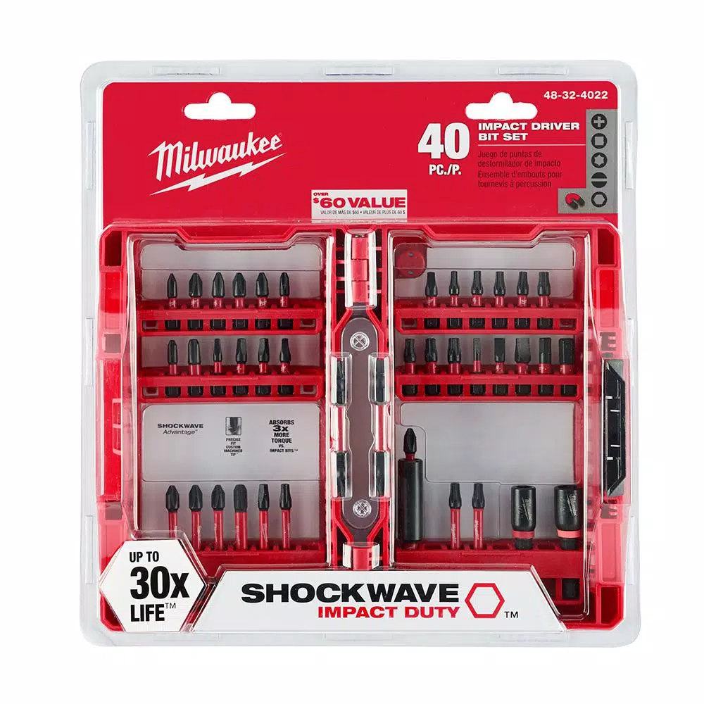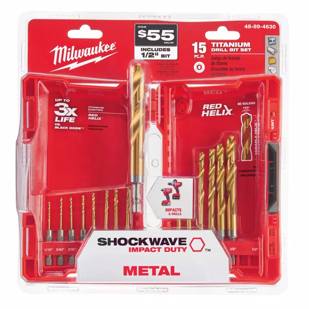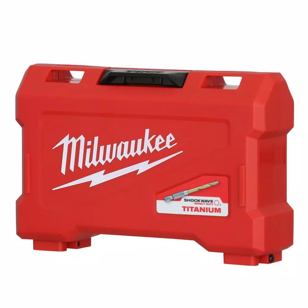 The Milwaukee 15 piece SHOCKWAVE Impact Duty Titanium Drill Bit Set with Red Helix are engineered for impacts drivers and drills. Cobalt RED HELIX Drill Bit Kit is engineered for extreme durability and long life in hard metal applications. The drill bits are designed with Variable Helix featuring an aggressive 35 Helix Angle ending at 15. This allows for Rapid Chip Removal, limiting heat buildup to stay sharper longer. The 135 split point drill bit tip delivers a precision start and prevents walking for fast, accurate holes. The titanium coated bits can be used in all drilling applications giving up to 3X life versus Black Oxide drill bits. Milwaukee Shockwave Impact Duty driver bits are engineered to be the most durable, best fitting driver bits on the market. The optimized Shock Zone geometry is unique for each tip type to provide up to 30X longer life and absorb 3X more torque versus other impact bits. Shockwave driver bits are built to deliver extreme durability for the most demanding applications. Shockwave Impact Duty driver bits can be used in impact drivers or drill drivers.