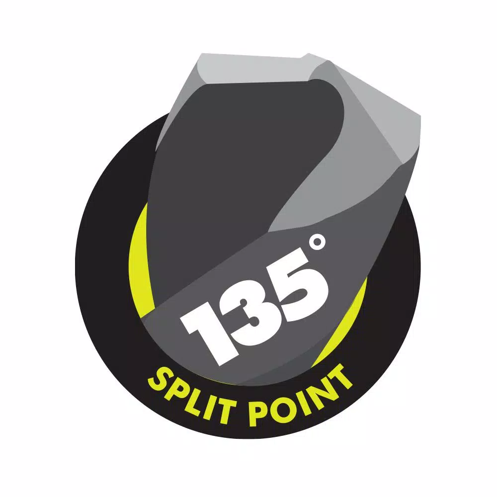 - Titanium Bits: 135Β° split point drills on contact and prevents walking