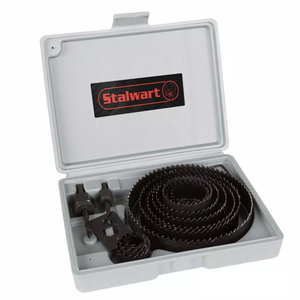Cut clean, smooth, and precise holes through wood, plasterboard or drywall. The Stalwart 16 Piece Hole Saw Kit offers long lasting durability and reliability for all of your project needs. Itβs revolutionary design will help make difficult projects simple.