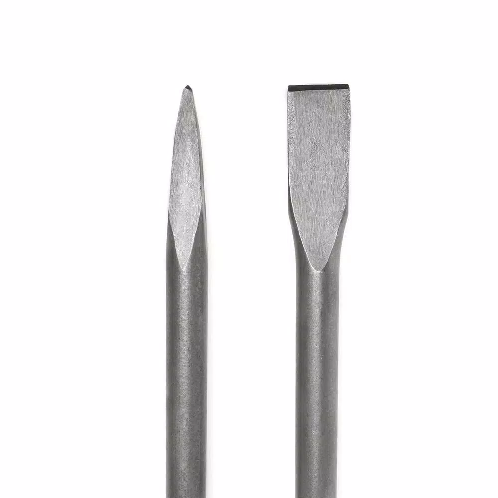 The Stark 1-1/8 in. Hex Flat and Point Chisel Set comes with the standard bull point bit and narrow flat chisel, which are the most commonly used multi-purpose bits for concrete breaker. Whether you use the point tipped chisel for breaking up concrete and asphalt or crushing and chipping with the flat chisel. This Stark Flat and Point Chisel Set allows you to tackle the toughest of demolition projects.