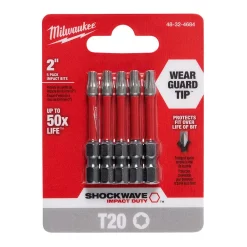 Drill Bits Milwaukee SHOCKWAVE Torx #15 3.5 In. Impact Duty Steel Screwdriver Bit (5-Pack)