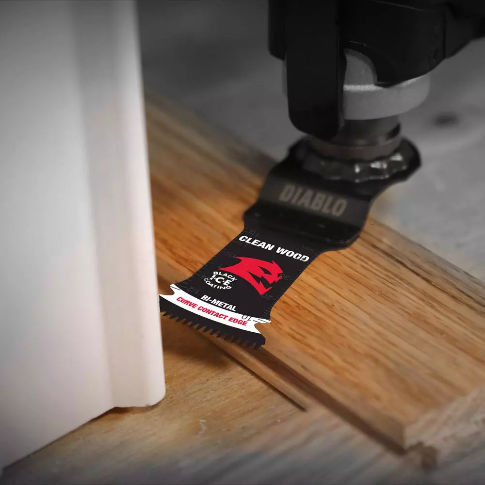 DIABLOโs universal fit bi-metal oscillating blades feature application specific designs that deliver maximum durability and longer life in clean wood applications. These high-performance blades feature an ultra-hardened cutting edge to deliver up to 5X longer life than standard blades. Curve contact edge creates a pilot for precise, clean plunge cuts with less vibration. An optimized Japanese tooth design and Black I.C.E. (Industrial Cooling Element) keeps the teeth cool and build up free for fast, clean cuts. The bladeโs universal fit, adapter-free design easily attaches most tools, with the exception of Starlock tools.