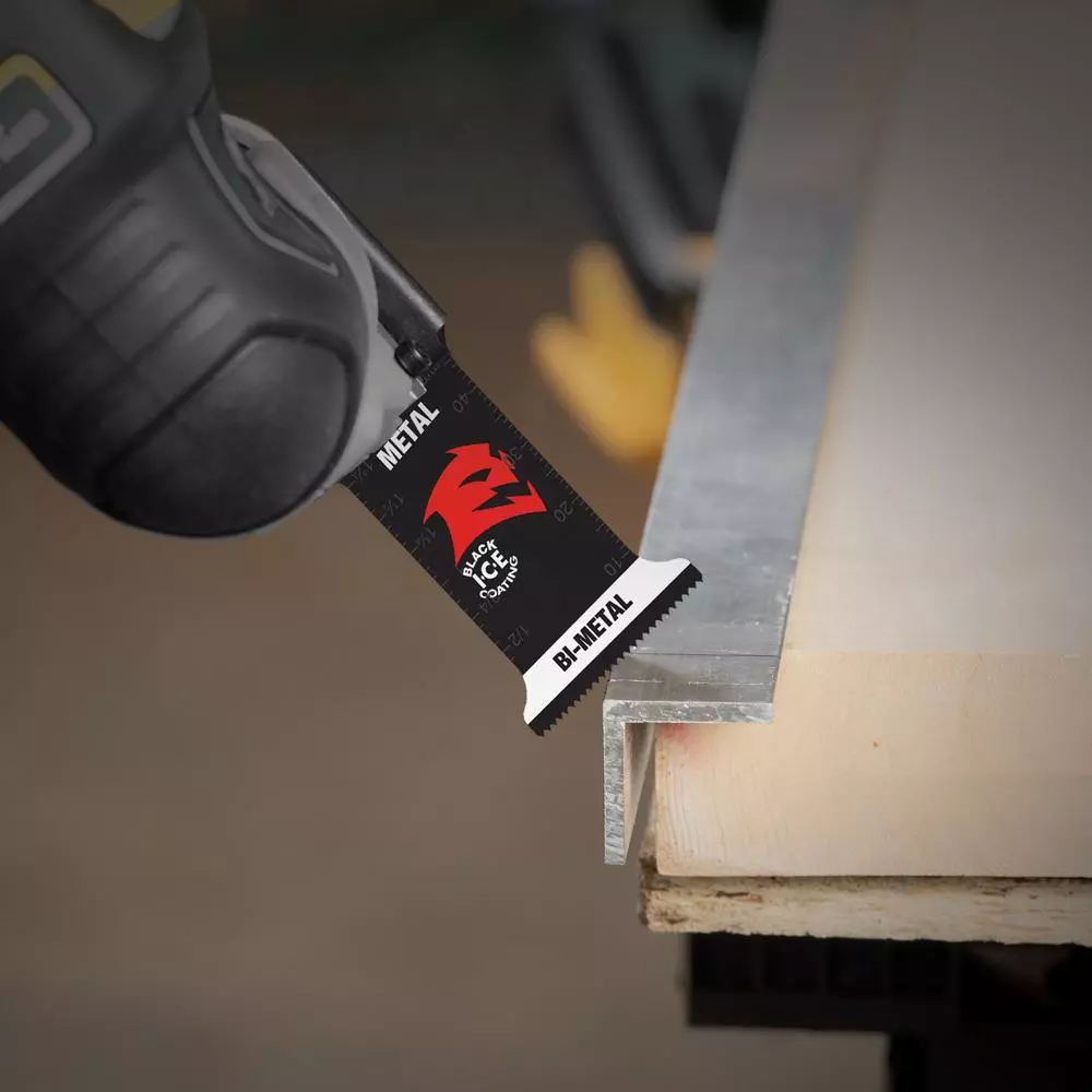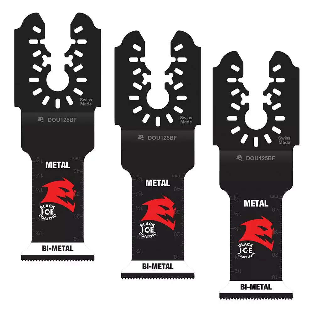 DIABLOโs universal fit bi-metal oscillating blades feature application specific designs that deliver maximum durability and longer life in metal. These high-performance blades feature an ultra-hardened cutting edge to deliver up to 5X longer life than standard blades. An optimized tooth design reduces vibration for fast and clean cuts. Black I.C.E. (Industrial Cooling Element) keeps the teeth cool and build up free for fast, clean cuts. The bladeโs universal fit, adapter-free design easily attaches most tools, with the exception of Starlock tools.