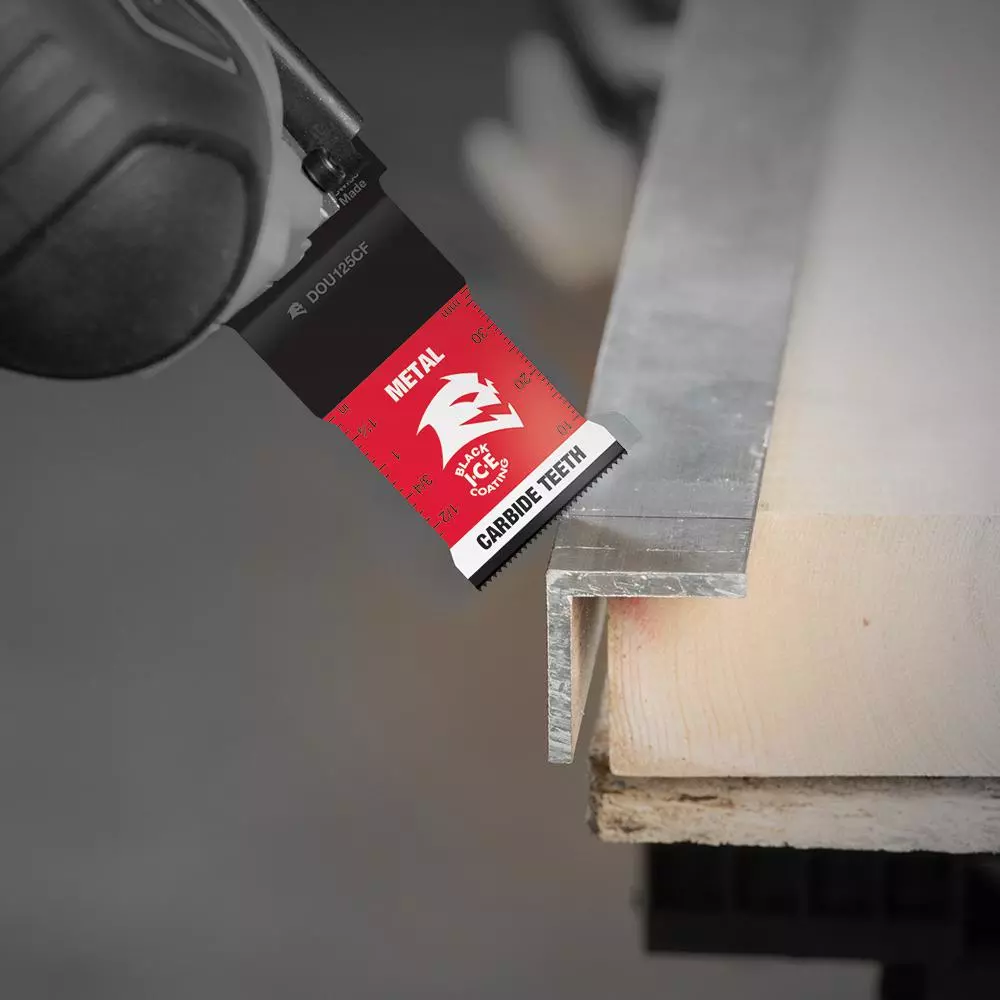 DIABLOโs universal fit carbide oscillating blades feature application specific designs that deliver extreme durability and superior cutting life in metals. High-performance carbide teeth deliver an unmatched up to 50X longer cutting life versus standard bi-metal blades. An optimized blade and tooth design along with Black I.C.E. (Industrial Cooling Element) keeps the teeth cool and build up free for fast, clean cuts. The bladeโs universal fit, adapter-free design easily attaches to most tools, with the exception of Starlock tools.