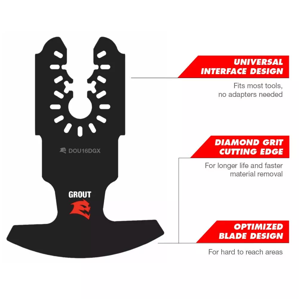 DIABLO’s universal fit diamond grit oscillating blades feature application specific designs that deliver maximum durability and longer life grout removal applications. An optimized blade design delivers faster material removal in hard to reach areas. The blade’s universal fit, adapter-free design easily attaches most tools, with the exception of Starlock tools.