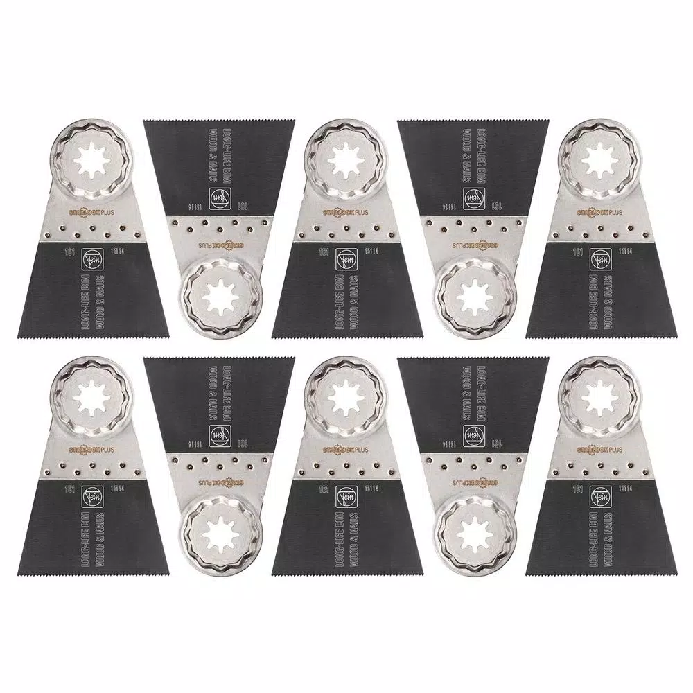 The FEIN Starlock Plus Long-Life E-Cut 161 saw blade has an outstanding service life and excellent work progress. The Long-Life E-Cut 161 saw blade are extremely robust and makes very clean cuts in drywall, plastics, and all wood materials. The Long-life blades will cut nails (up to approx. 4 mm Dia). Even if you donโt own a FEIN oscillating multi-tool, you can affordably upgrade output by choosing a FEIN Starlock blade. The Starlock Plus mount fits all popular multifunction tools with Starlock Plus and StarlockMax mounts, as well as older model FEIN MultiTalent and MultiMasters.