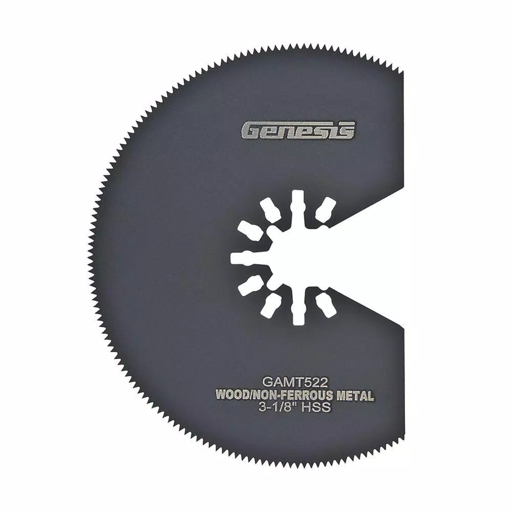 High-Speed Steel Segmented Saw Blade is a 3-3/8 in. wide blade for continuous cutting with oscillating tool. Use in wood, drywall, plastic, copper, aluminum, other nonferrous metals, and other soft materials. Cuts up to a 1 in. depth. GAMT522 HSS Segmented Saw Blade is an excellent accessory for our popular Genesis GMT15A, GMT16V and GMT25T oscillating tools.
