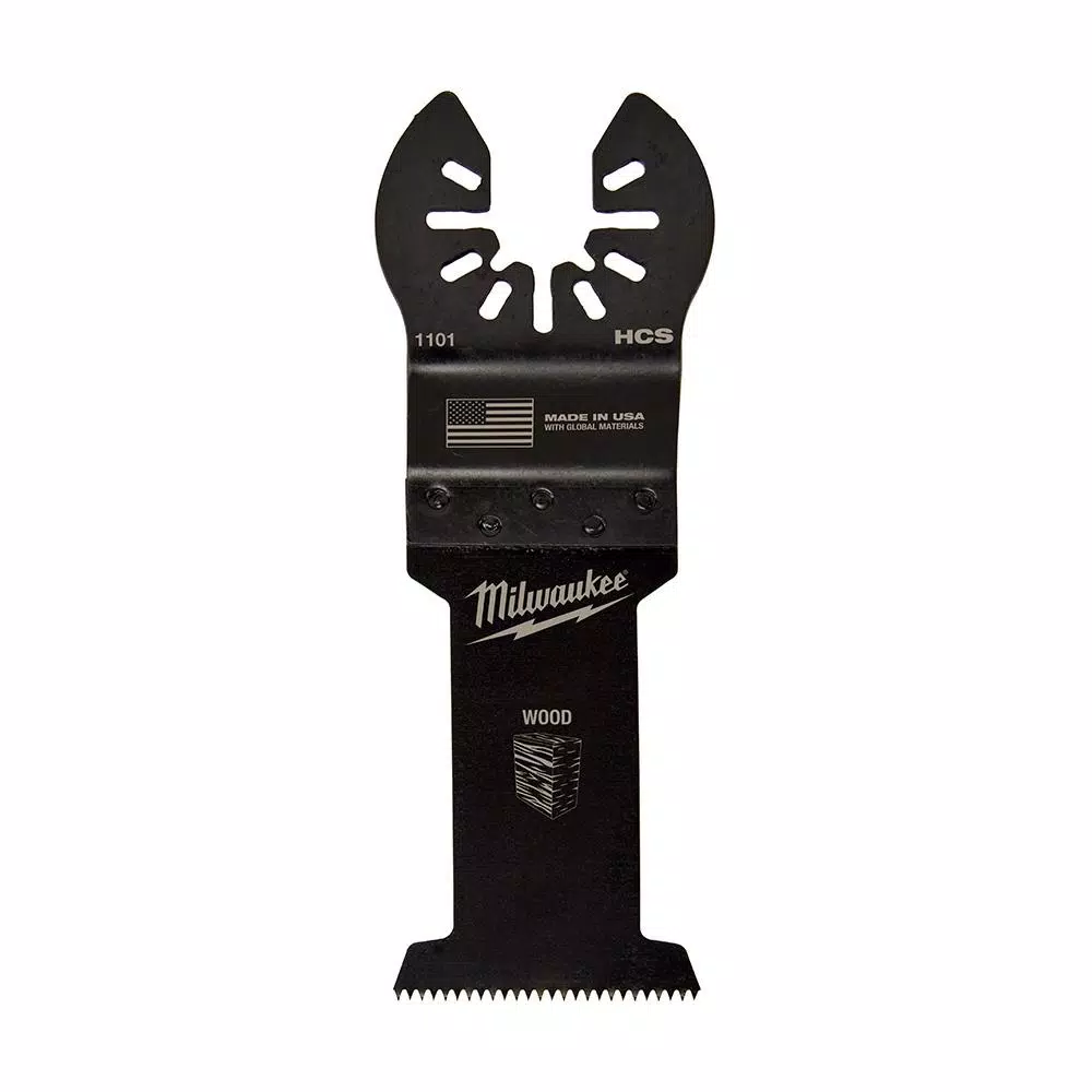 The MILWAUKEE Universal Fit OPEN-LOK Oscillating Multi-Tool 1-3/8 in. HCS Wood Blade 1 Pack is made from premium high carbon steel with edge ground teeth, providing users with optimal cutting performance in wood, PVC, drywall, and other soft materials. This Milwaukee blade delivers faster cuts than the previous generation of high carbon steel blades with more teeth and an increased 1-3/8 in. cutting width with a deeper plunge cut. This wood cutting blade for multi-tools is designed with global materials.