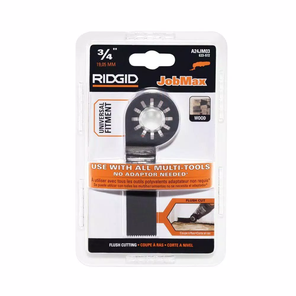RIDGID introduces the 3/4 in. Wood Offset Plunge Cut Blade. This blade allows for vertical cutting parallel to the floor. This plunge cut blade is made from high carbon steel for enhanced durability. Its universal fitment makes it compatible with most all multi-tools.