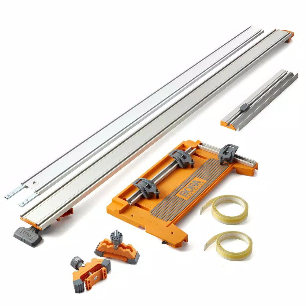 - Includes: 50-inch clamp edge, 50-inch extension with connectors, saw plate, (2) 55-inch rolls of non-chip strip, pair of track clamps, T-square accessory