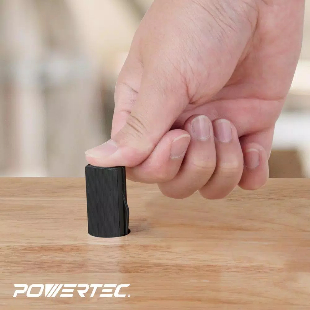 Introducing the Extra Heavy-duty Steel Bench Dogs by POWERTEC. PACK OF 2. These essential woodworking bench accessories will instantly enhance the function of any workbench. They are extremely easy to use and can be installed anywhere by drilling a 1 in. diameter hole. They work by securing your work to the top or edge of your workbench – thus increasing accuracy and safety while working. PREMIUM DESIGN: Designed and engineered with a steel core construction, this non-wood, premium steel version has an overall length of 7-5/8 in. The side spring features a matching smooth black finish that offers corrosion resistance. The flat face is 2-3/8 in. long and has evenly spaced grooves, adding a premium look and feel to the dog, while the face of the bench dog is square to the work surface. This helps it to align automatically to the straight edges as the vise is closed. The rounded section can be used to clamp concave edges without marring or leaving unwanted clamp marks.