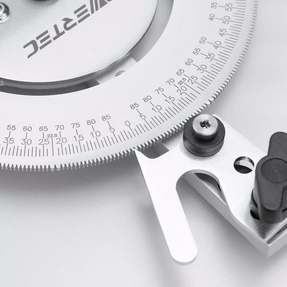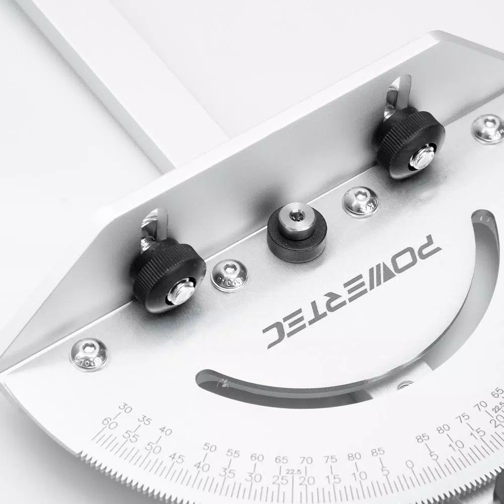 Introducing the Exclusive Table Saw Miter Gauge by POWERTEC. If you have got an angle in mind this multi-functional tool can help. Features 120 total lockable stops: 120 lockable angled stops indexed every 1 degrees, plus other popularly required angles. Additionally even more angle options are clearly indexed and easy to follow. Durable and Versatile: Laser-cut aluminum construction ensures the user an ultra accurate, high quality and high perfuming tool that offers rugged, yet lightweight durability. Can be used on tables with or without t-slots. The removable retainer plate at the barโs end prevents the miter bar from flipping, essential when extending the off the table to implement wider crosscuts. Improved Efficiency and Multi Features: The steel protractor head is bottom-coated with nylon for easy glide-ability. Included mounting fence brackets (universal) offer you the option to configure an auxiliary fence in square alignment to your worktable. Its large handle offers great working leverage. Compact design for easy store and carry. Great for use with your table saw, router, band saw, disk sander, belt sander and more โ works well with and table saw or machine that has a 3/8 x 3/4 t-slot. Required hardware included. More POWERTEC MIter Gauge Offerings: POWERTEC 71005 Deluxe Table Saw Miter Gauge/POWERTEC 71391 Deluxe Table Saw Precision Miter Gauge System/POWERTEC 71142 Deluxe Miter Gauge for Table Saw With 27 Angle Stops.