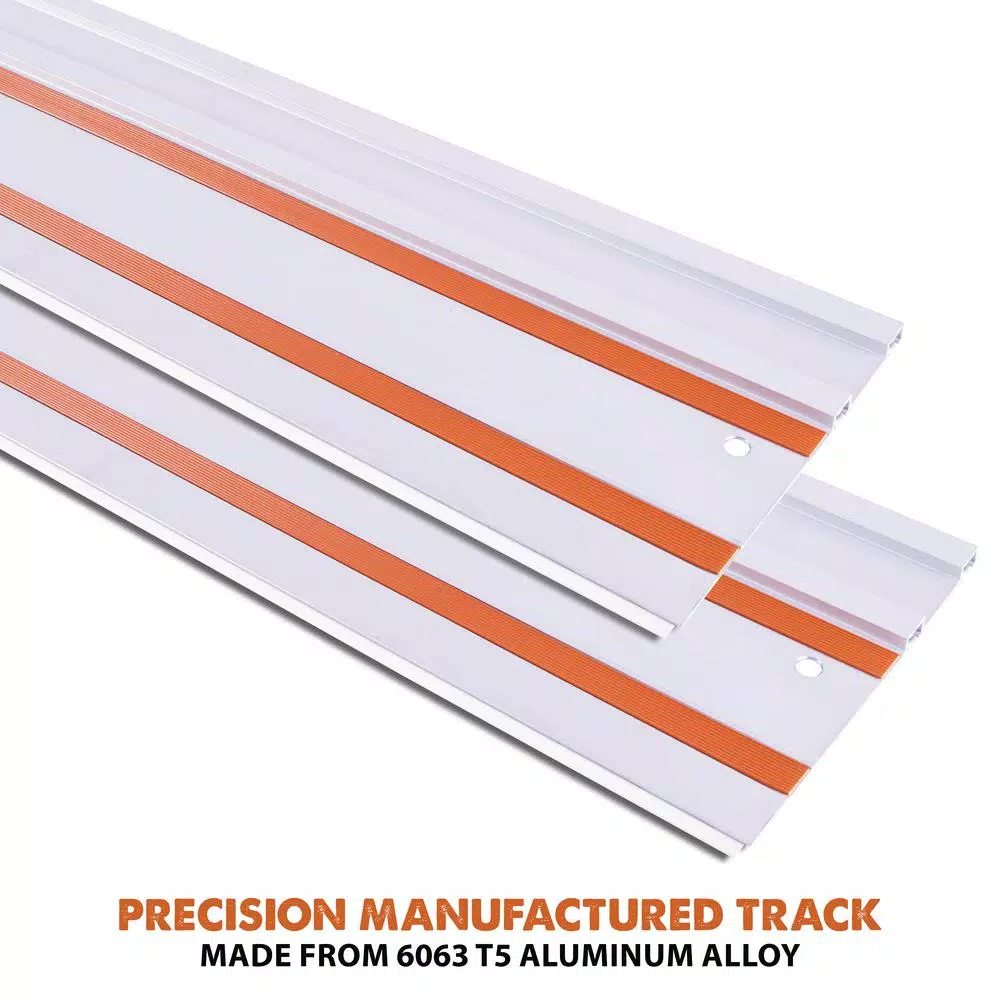 The Evolution ST1400 is a 55 in. circular saw track. Ideal for cutting 4 ft. sheet materials and is made from a strong and sturdy T5 Aluminum Alloy. Supplied in 2-pieces of 2-1/4 ft. track with connectors and easily transported in carry bag that is included. Designed for the Evolution R185CCSX and R185CCSX+ and compatible with most other brands.