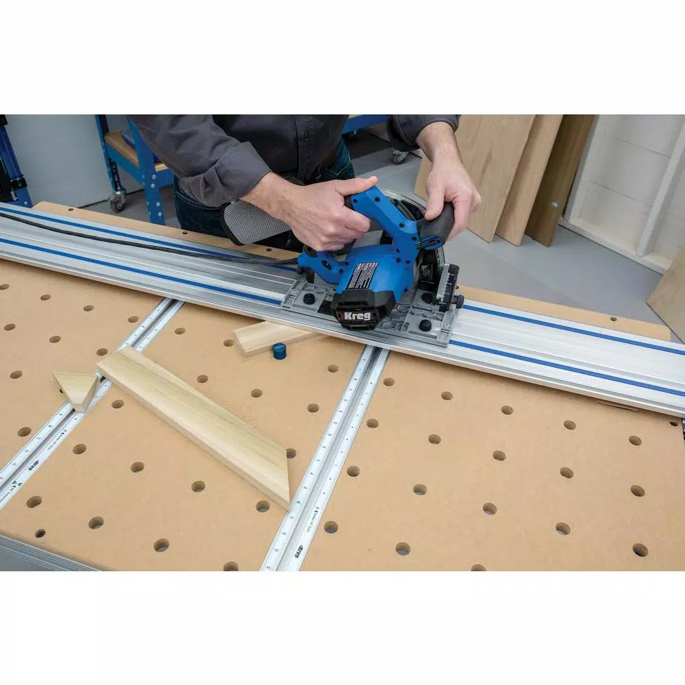 - 62″ aluminum guide track cuts precisely alone or on the Adaptive Cutting System Project Table