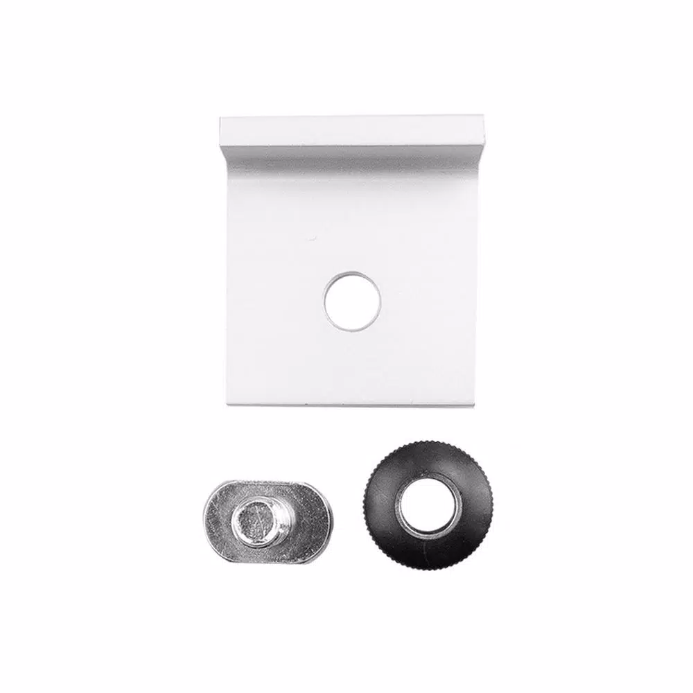 Introducing the Universal Stop Kit for the T-Track System by POWERTEC. These tool-less stops are designed to provide you with a quick, precise and secure holding option for a wide assortment of woodworking applications. This kit includes t-track stops for each direction. You can utilize the short stops on one end of your workpiece to hold it fixture firmly in place, or the inline stops to secure and sandwich your stock for proper alignment no matter the angle. FEATURES: โ Includes round, low profile knobs for optimal and secure tightening. They offer exceptional clearance that allow you to work with thin stock (as thin as ยพ in.), and/or can help reduce interference of tools when hand planing, belt sanding or scraping dried glue. โ Made with extruded aluminum for high quality strength and long term durability. Also possesses a premium anodized silver finish for corrosion resistance. โ The short stops (running parallel to the stop face) have sharp edges on both ends, while the edges have been removed for the inline stops (running perpendicular to the stop face). COMMONLY USED APPLICATIONS: CNC Machining, Lite Board Clamping, Hand Planing and Sanding, T-Track Jigs and Fixture Configurations T-TRACK SYSTEM CONTAINS: (2) Parallel Stop [1-5/8 in. x 1-1/2 in.], (2) Perpendicular Stops [1-5/8 in. x 1-1/2 in.] (4) Low Profile (Black) Round Thru Knobs [3/4 in. Dia x 7/16 in. H] (4) T-Bolts [5/16-18 in. x 3/4 in. L].