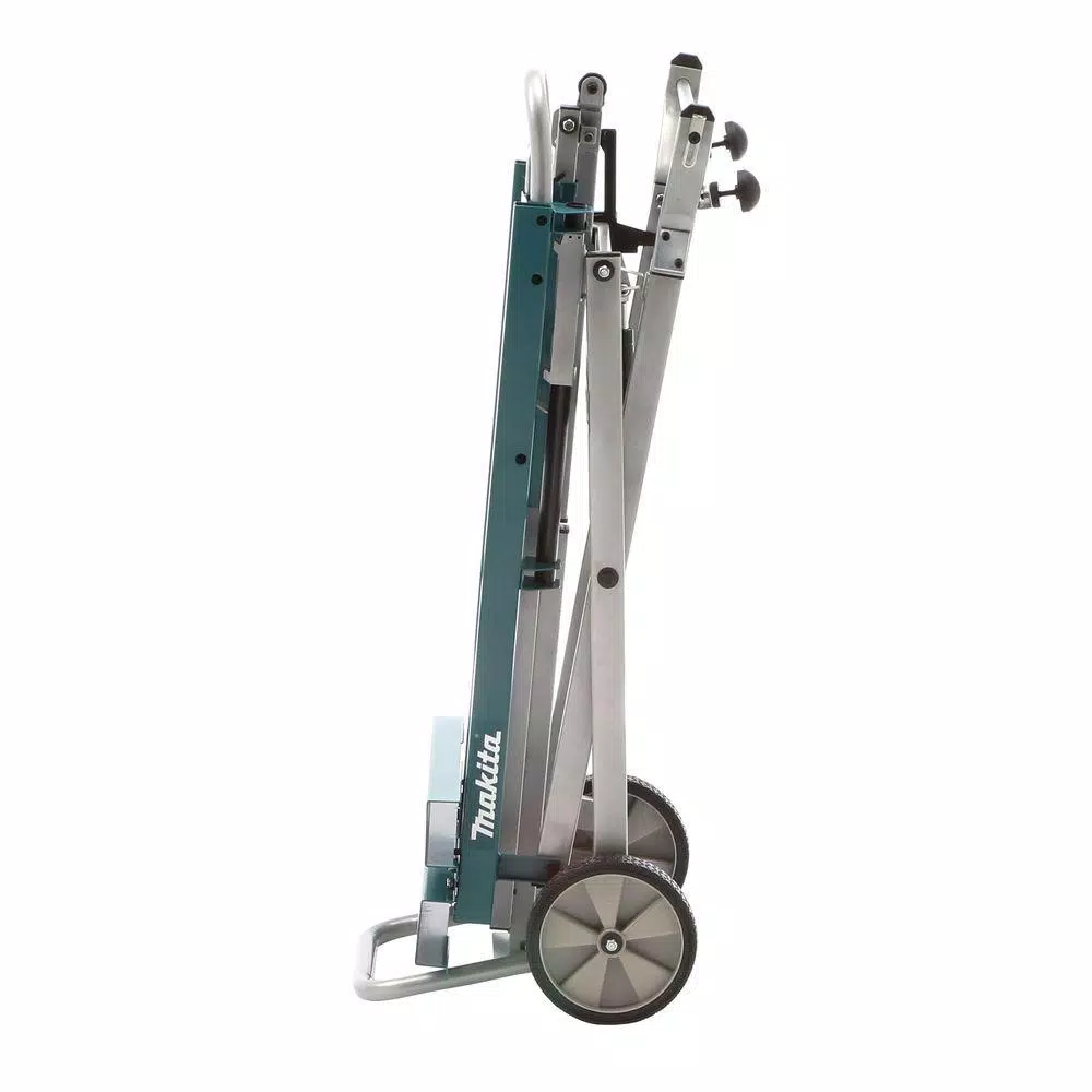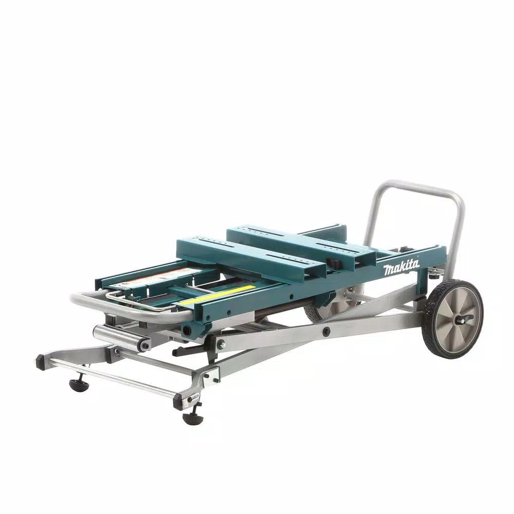 The Makita Job Site Miter Saw Stand is versatile and durable for wherever the job takes you. It features material support extensions that add up to 9 ft. to support long crown molding and fold back down in seconds. The compact design makes it convenient for transporting from the job site.