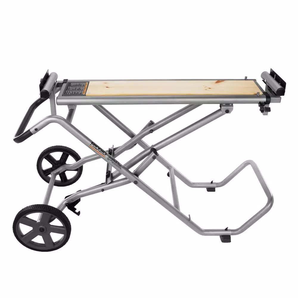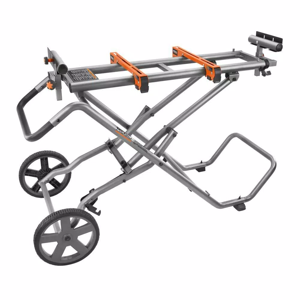 RIDGID introduces the Universal Mobile Miter Saw Stand with Mounting Braces. The stand is compatible with most common miter saws and the utility vehicle sets up in seconds. The stand features an upright folding design for easy storage, set-up and break down. Backed by the Industry Leading Lifetime Service Agreement, this Mobile Miter Saw Stand and Utility Vehicle includes 2 mounting brackets, 2 material stops, 2 material supports, hardware, 2 wheels, a handle, 2 ft, a frame support leg, and an operators manual..
