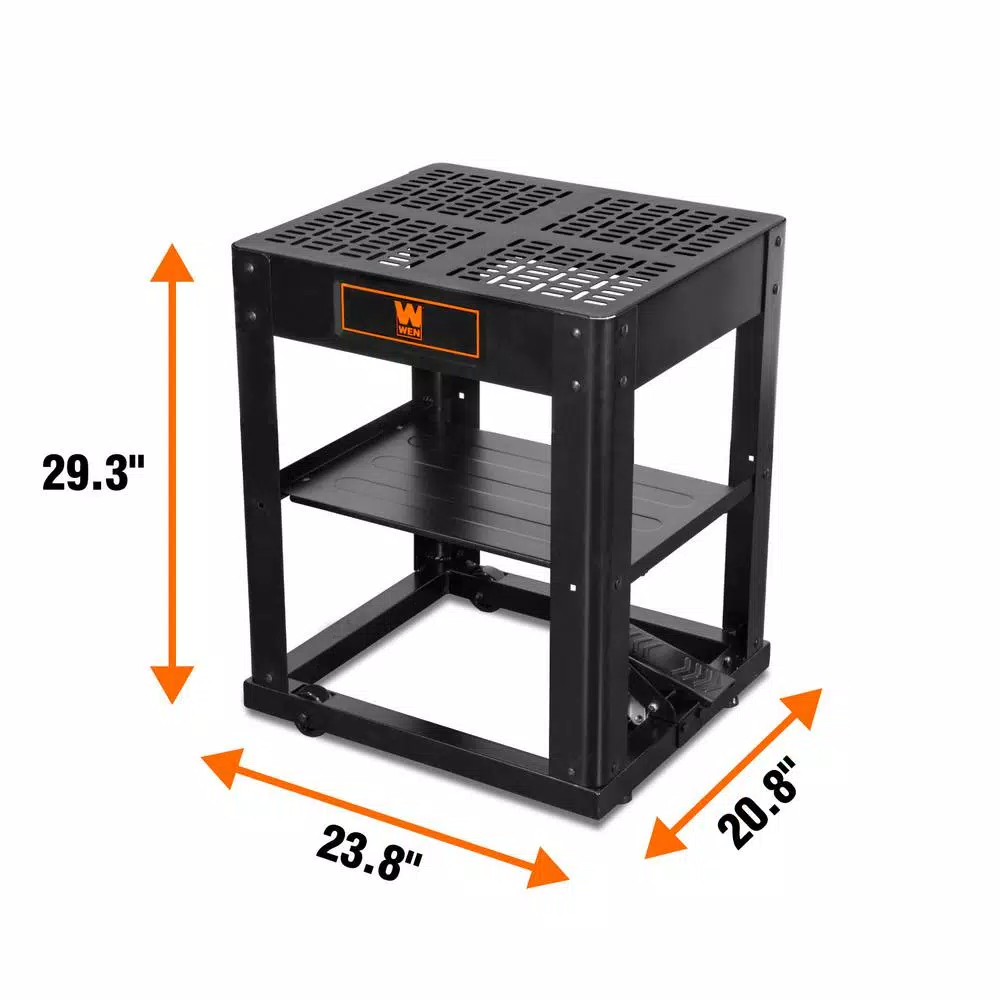 Remember when you could easily store and move your thickness planer around the shop. Its time to give your benchtop tools the support they deserve with the WEN Planer Stand. Featuring an onboard storage shelf and a retractable swivel caster, youβll be able to go from stationary to mobile in a matter of seconds. Step down on the easy-to-reach foot pedal to activate the wheels for easy transportation around your shop. The onboard storage shelf holds up to 55 lbs. of your favorite tools while the 23.8 in. x 20.8 in. tabletop handles up to 220 lbs. Although this was specifically designed for the WEN Thickness Planer series (models 6550, 6550T, 6552 and 6552T), the versatile mounting slots allow for a wide variety of tool types and shapes to be safely attached to the 30 in. tall stand. And because its a WEN product, your planer stand comes backed by a nationwide network of skilled service technicians, a friendly customer help line and a 2-year warranty all to make sure you remember WEN.