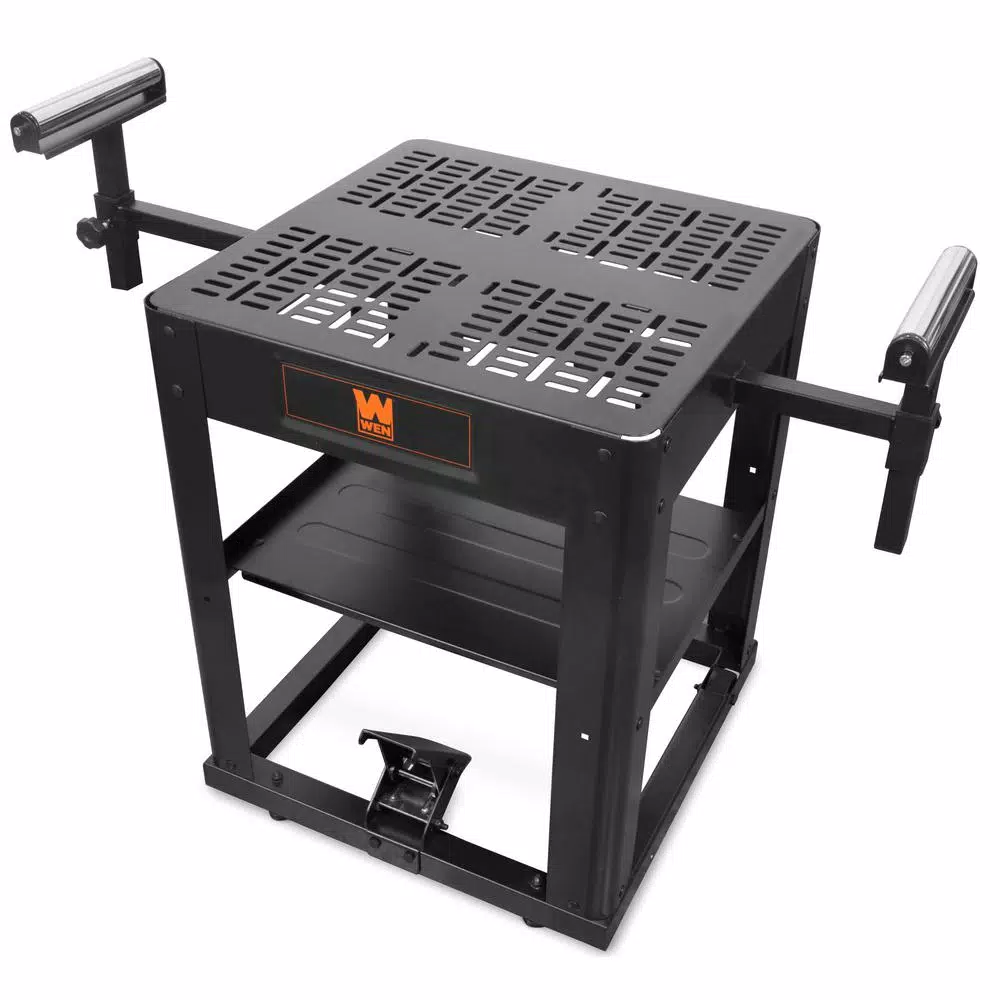 Remember when you could easily store and move your thickness planer around the shop. Itโs time to give your benchtop tools the support they deserve with the WEN Planer and Miter Saw Stand. Our unique design includes retractable extension rollers, providing your workpieces extra support during both planning and sawing. Featuring an onboard storage shelf and a retractable swivel caster, youโll be able to quickly go from stationary to mobile. Step on the easy-to-reach foot pedal to engage the wheels for easy transportation around your shop. The 22.7 in. x 22.7 in. tabletop handles up to 220 lbs. of weight load while the lower storage shelf holds up to 55 lbs. The tabletopโs versatile mounting slots allow for compatibility with the entire WEN Planer and Miter Saw series, as well as the majority of other planers and miter saws on the market. But this stand isnโt limited only to saws and planers, itโs also the perfect companion for jointers, sanders, grinders and more. And because itโs a WEN product, your planer stand comes backed by a stocked inventory of replacement parts, a friendly customer help line and a 2-year warranty. Remember when you had the support you needed. Remember WEN.